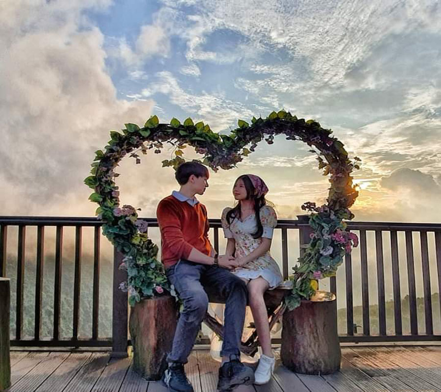 + Tận hưởng background siêu xịn: Nếu ví núi rừng lai Châu là bức tranh thiên nhiên xanh khổng lồ thì cổng trời Ô Quy Hồ chính là điểm nhấn sáng nhất ngay giữa bức tranh. Đến chùa Ô Quy Hồ rũ bỏ hết mọi bụi trần ưu tư muộn phiền, thắp một nén nhang thơm cầu sức khỏe, cầu cho bản thân và gia đình hạnh phúc bình an. Nếu đi cùng người ấy hãy dạo bước qua cầu tình yêu, dừng chân bên trái tim đỏ rực khổng lồ như chính tình yêu bền chặt lứa đôi. Nắm tay nhau bước lên từng nấc thang lên thiên đường hay lạc vào vườn đào đã trở thành ký ức tuổi thơ trong bộ phim quen thuộc Tây Du Kí.